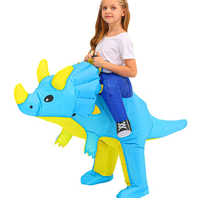Montez sur le dos de votre Tricératops pour ne pas vous faire embêter par les petits prédateurs mangeurs de chair avec ce Costume Dinosaure Gonflable Bleu.