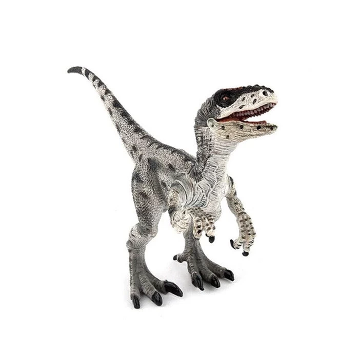 Ce splendide Jouet Dinosaure Vélociraptor Blanc ne se laisse pas faire. Faites le combattre contre n’importe quel autre reptile il en sortira vainqueur.