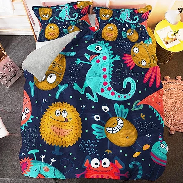 Cette Parure De Lit Dinosaure Monster Dino est très rigolote, son coté déjanté en associant monstres et dinosaures la rend spéciale et agréable.