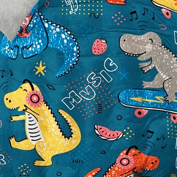 Voici des petits reptiles adolescents écoutant de la musique, c’est ce qu’on peut voir sur cette Parure De Lit Dinosaure Musique Dino. Super idée non ?