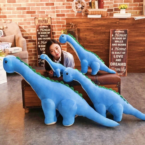 Cette Peluche Dinosaure XXL Diplodocus Bleu est en plusieurs tailles. Vous pouvez opter pour un petit format 32 cm ou oser prendre le grand format 150 cm.
