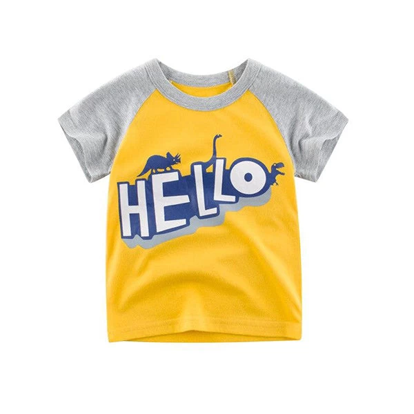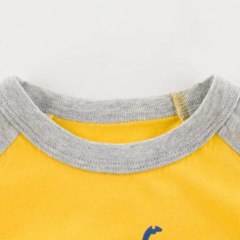 Ce T-shirt Dinosaure Manches courtes Jaune taille parfaitement au niveau des épaules. Sa couleur jaune ravive votre enfant et lui donne bonne mine.