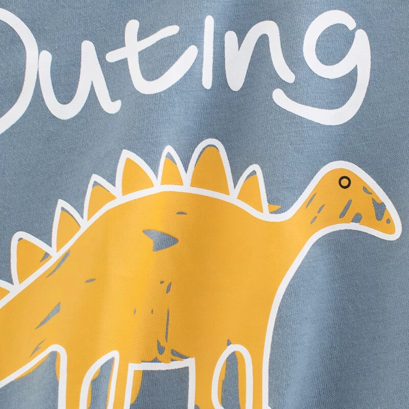 Magnifique T-shirt Dinosaure Stégosaure Jaune manches courtes pour enfant qui lui donnera le sourire en sachant qu’il porte un joli reptile sur son habit.