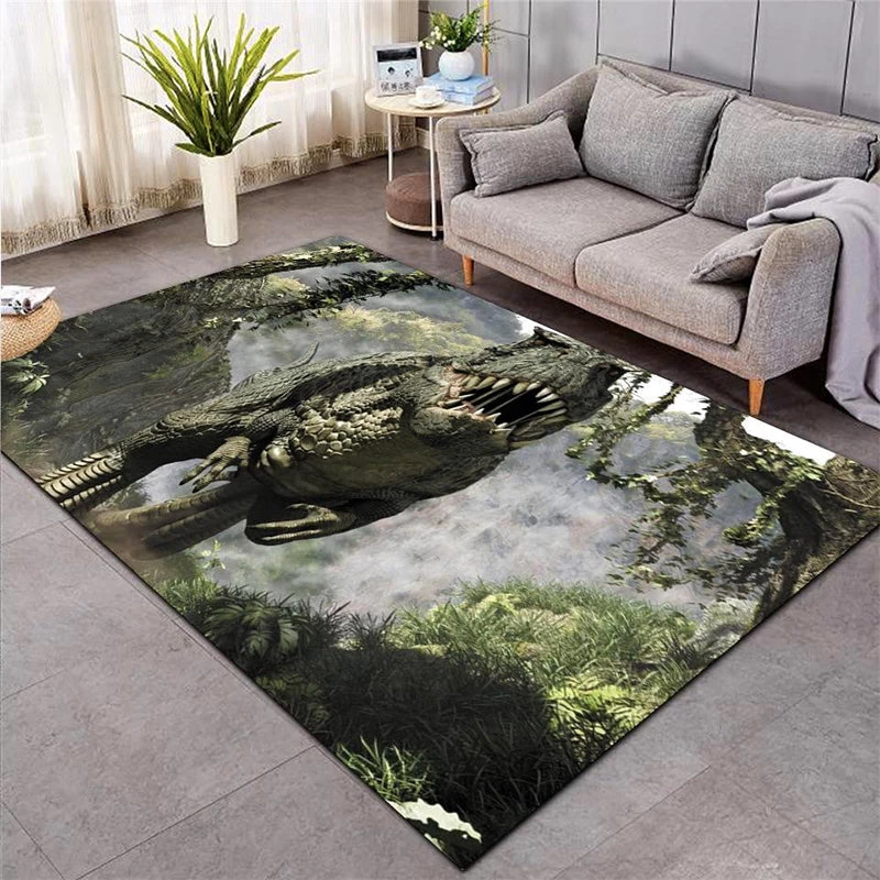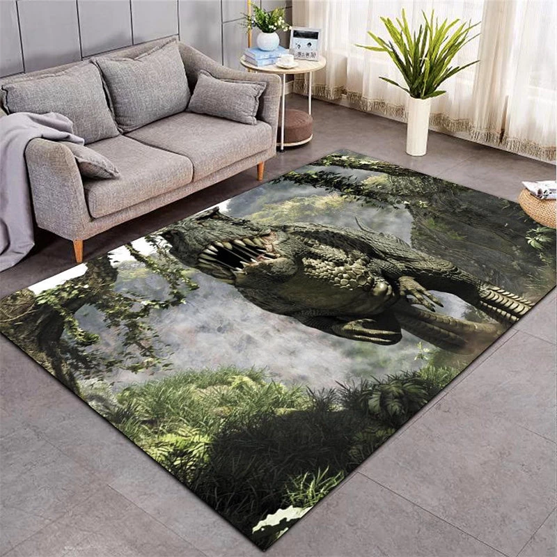 Il est entrain de pourchasser sa proie ! Le Tapis Dinosaure Grandes Dents représente le Tyrannosaure Rex en pleine course derrière un pauvre herbivore.